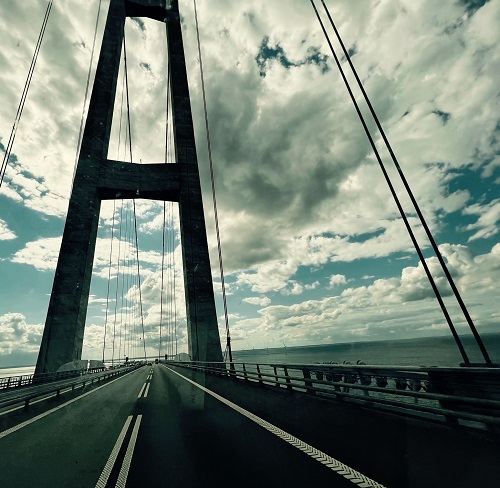 In Sallerup fing das Leben wieder an. Wir erstanden eine Prepaid-Karte, konnten sogar das Autonavi damit verbinden und machten uns auf den Weg nach Odenese, wo Hans Christian Andersen zuhause war. Dabei führte unser Weg über den Storebaeltsbroen, einen 18km langen Hängebrückenzug, der die Inseln Fünen und Seeland miteinander verbindet. Die Landschaft hier ist beeindruckend: Das Meer tiefblau, saftig grüne Wiesen und kleine Gemeinden mit entzückenden Bauwerken. Ich brauchte nur „Äh“ zu sagen und schon fielen mir die drei Anderen mit einem bestimmten „Nein“ ins Wort. Kein Fotostop! Dass ich schon so nie allein bin ist bekannt, aber dass ich im Urlaub eine japanische Reisegruppe vereine, was Fotos betrifft, hat eine andere Dimension. Da Odenese das Ziel war und nicht der Weg, war meine Kompromissbereitschaft in ausreichendem Umfang vorhanden.